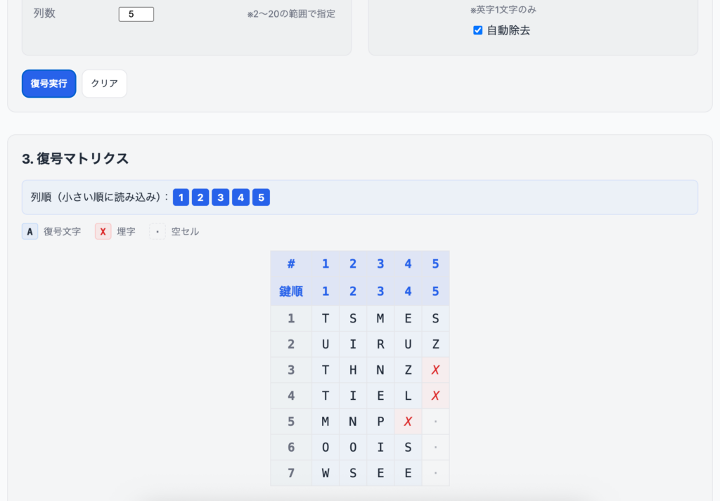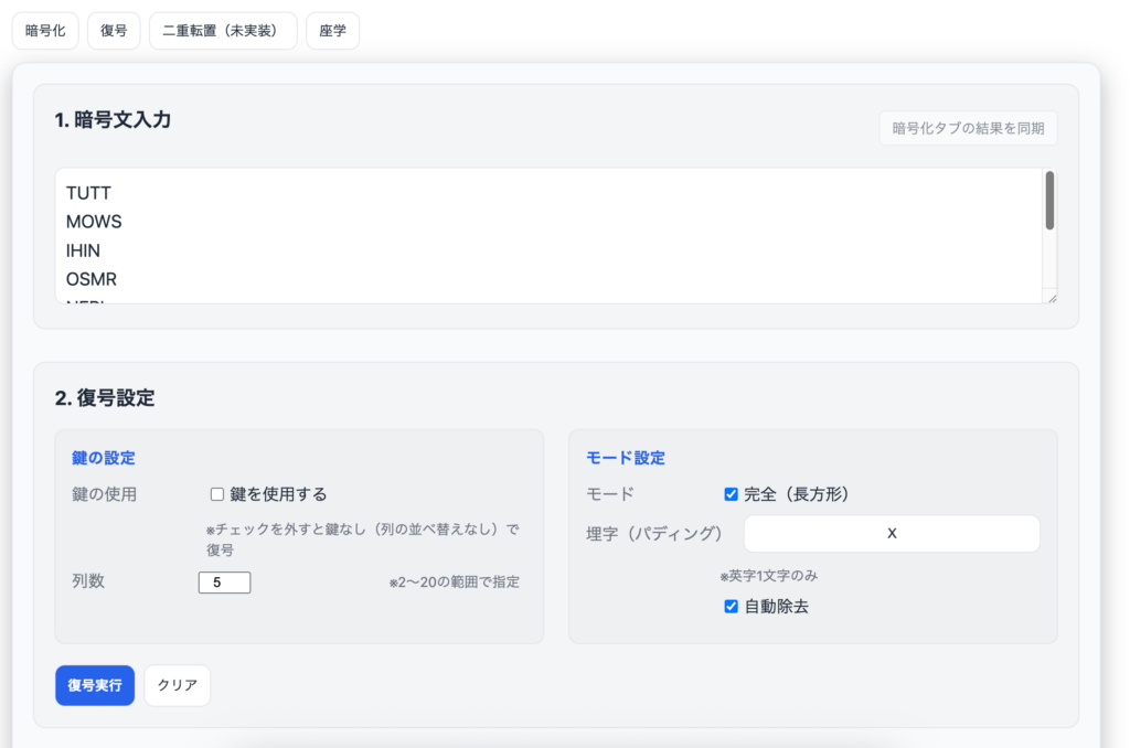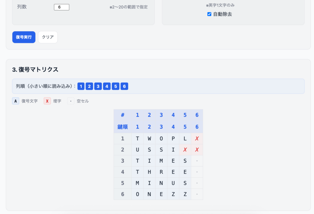 このマトリクスをツールの「復号」タブで暗号文として入力します。