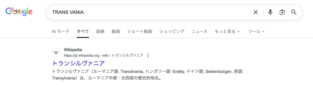 Google検索で「Strans」「vania」をAND検索すると、"Transylvania"(「トランシルヴァニア」という地名)がヒットしました。