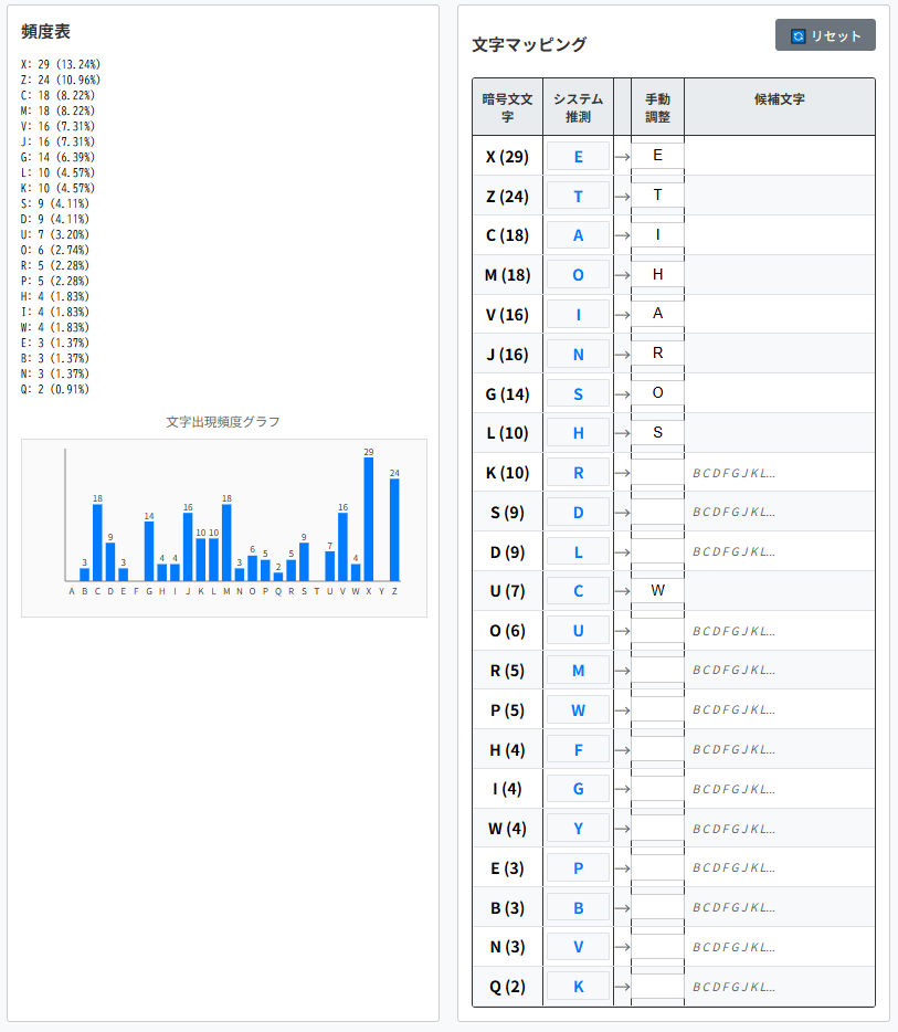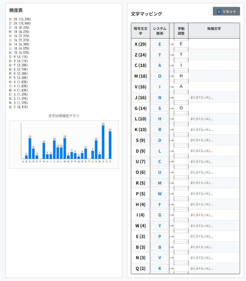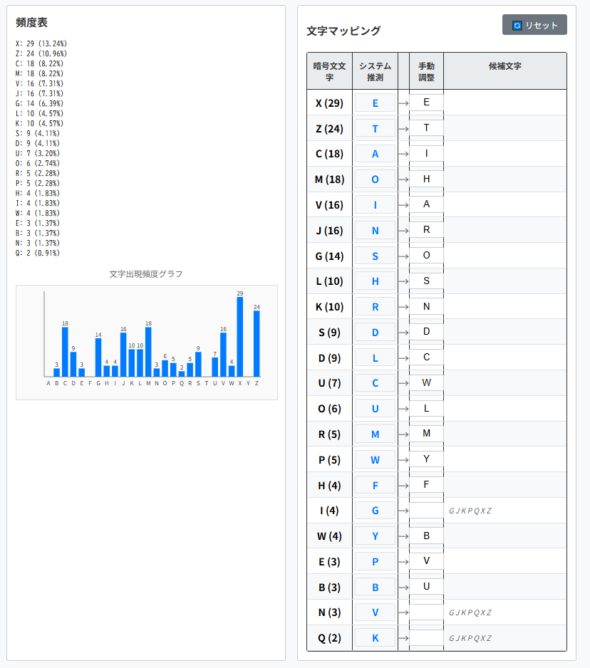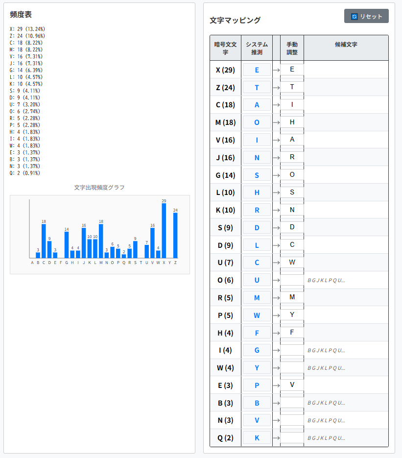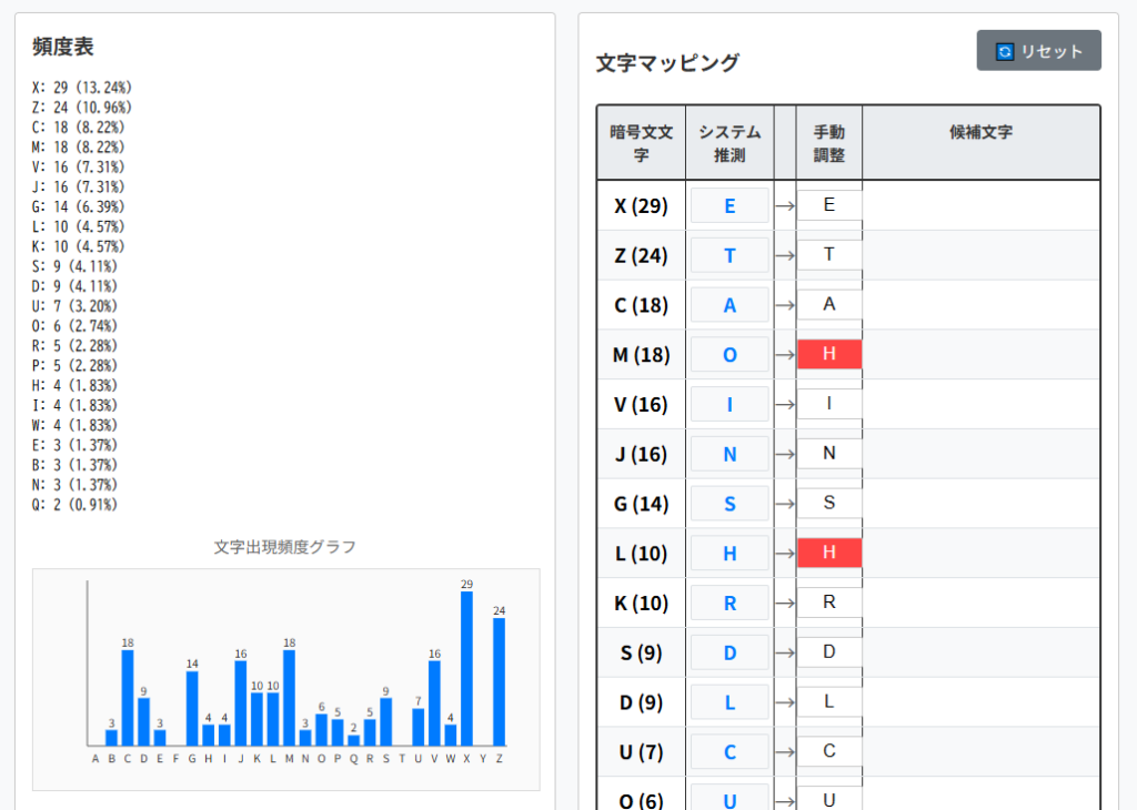そのため頻出単語をヒントとして解読を進められます。