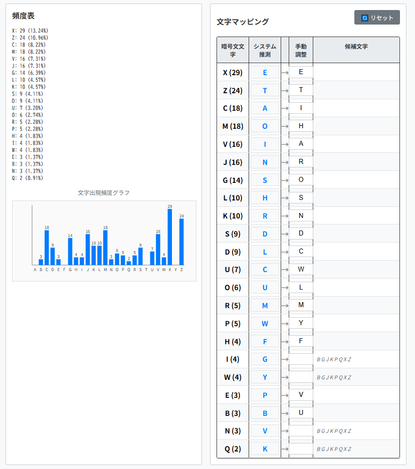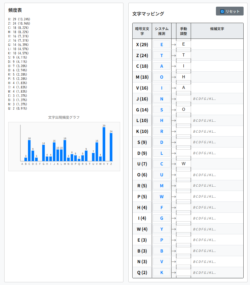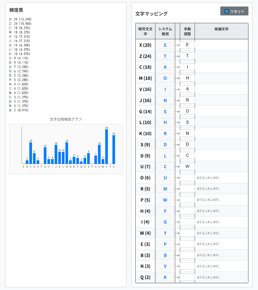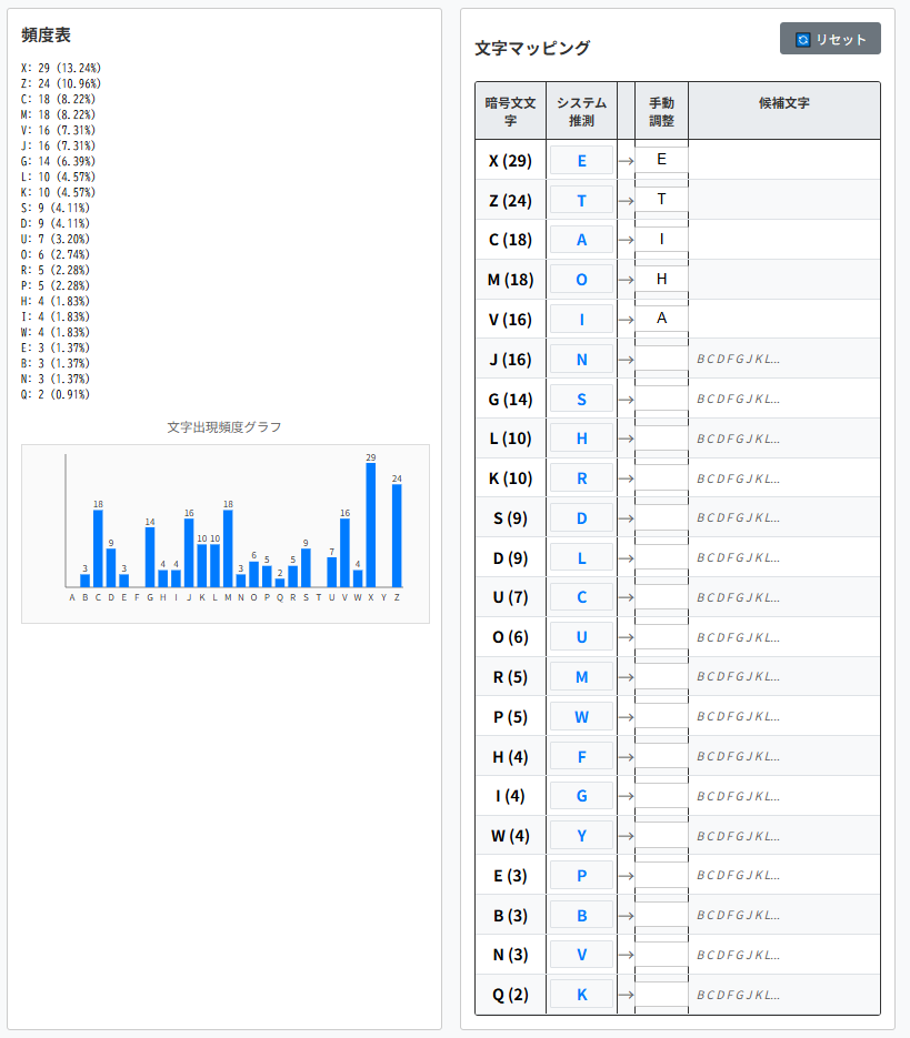 そのため頻出単語をヒントとして解読を進められます。