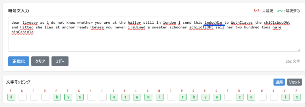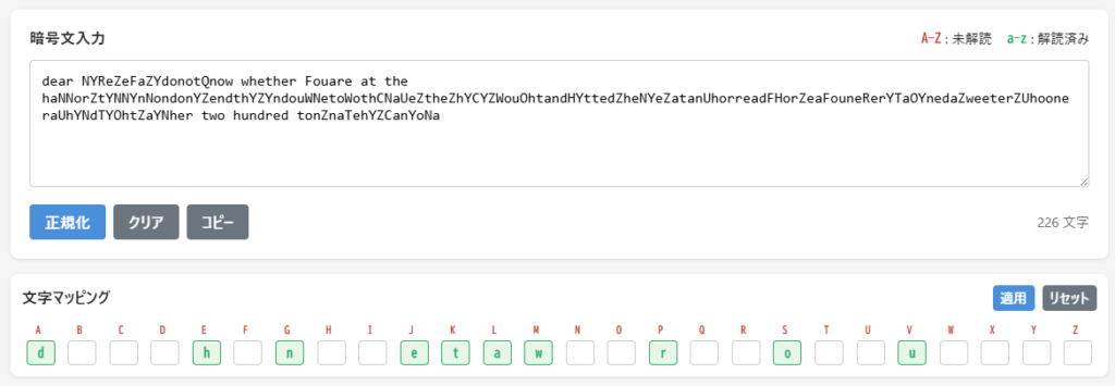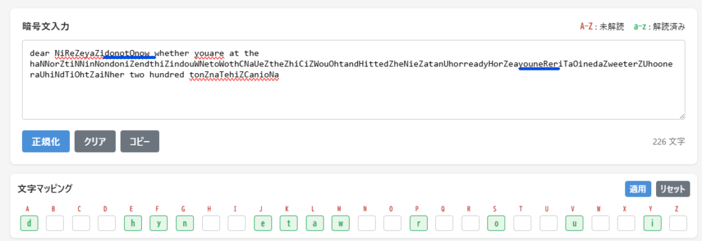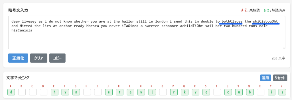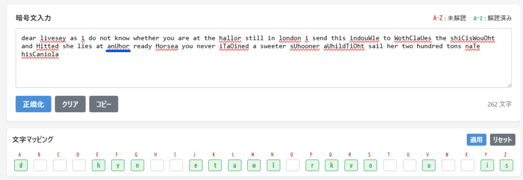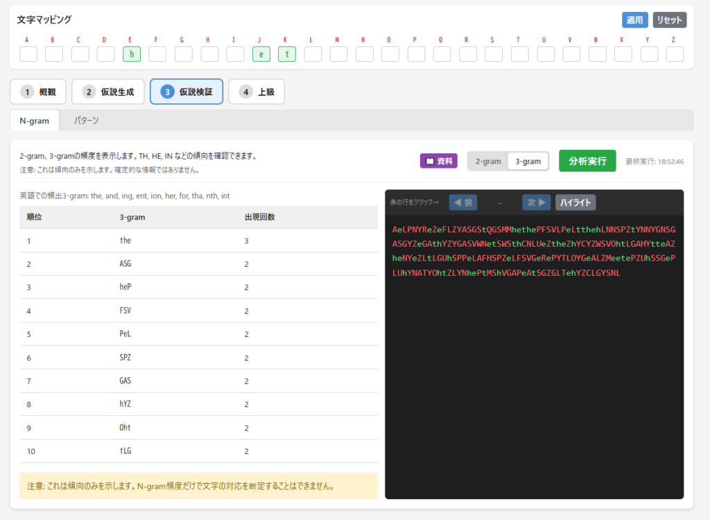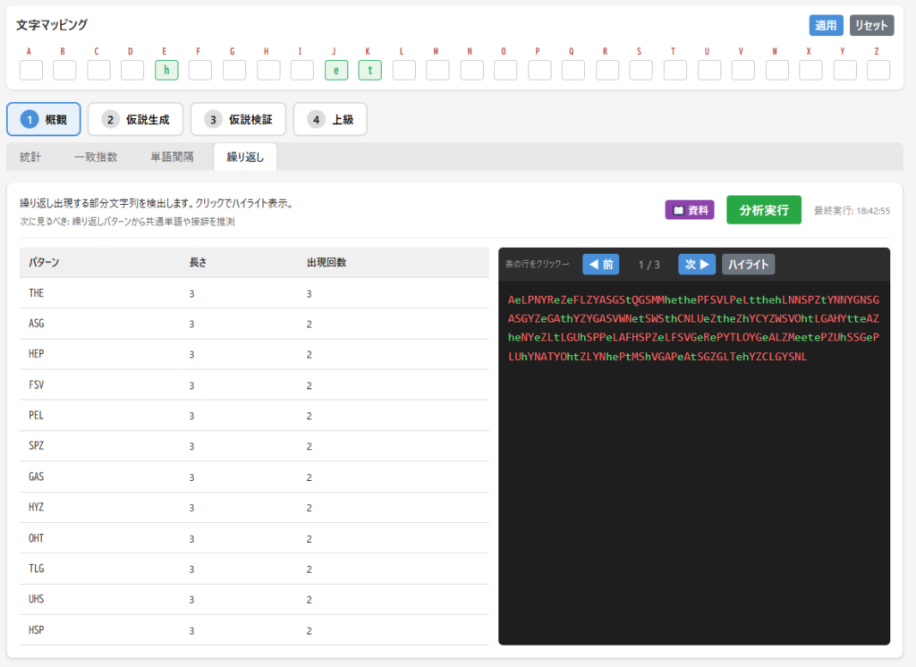 文字マッピングにおいて、この3文字の対応を適用させて、再度分析します。