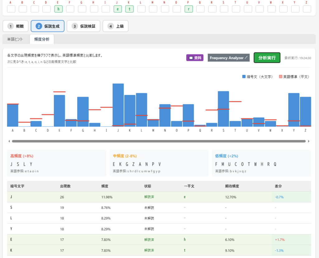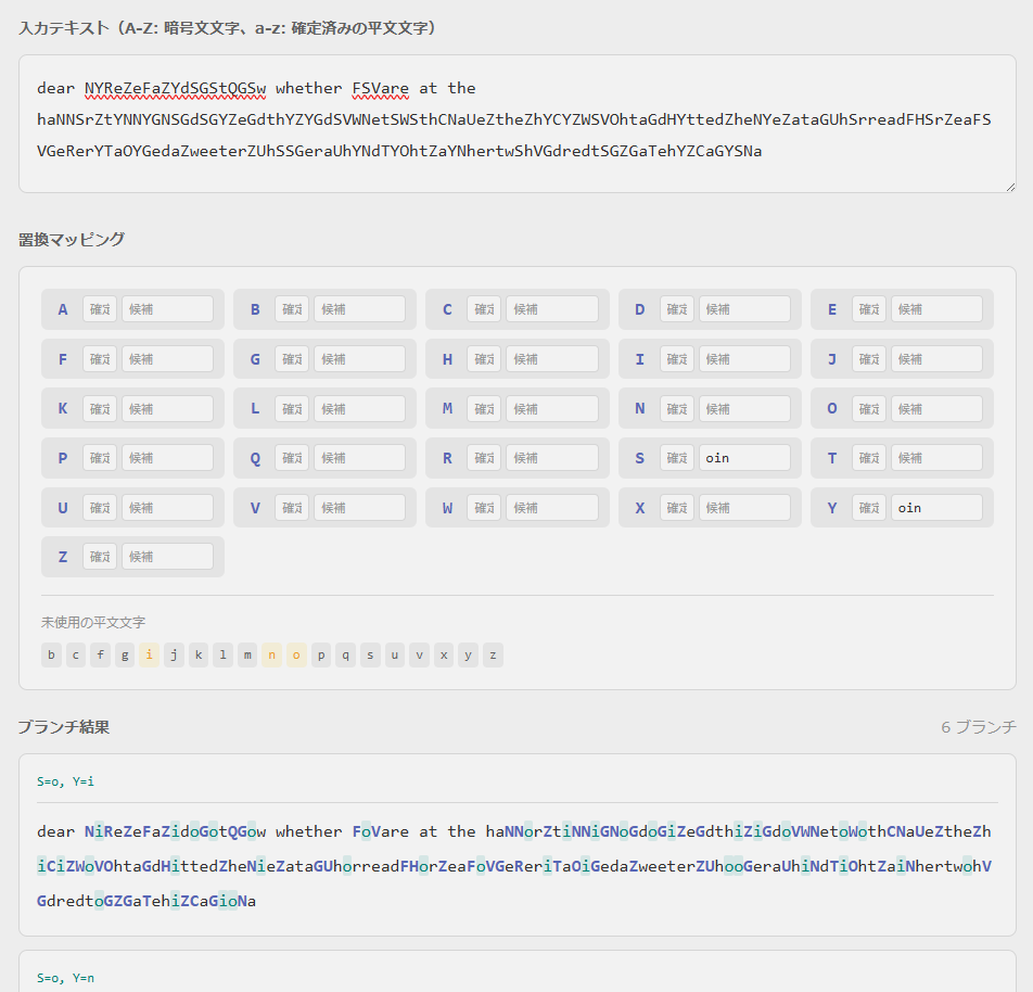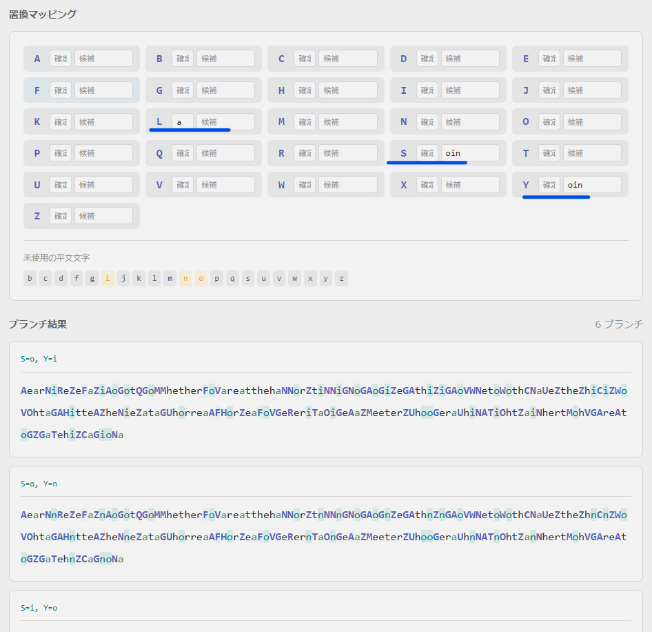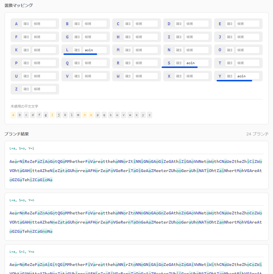 文字マッピングにおいて、この3文字の対応を適用させて、再度分析します。