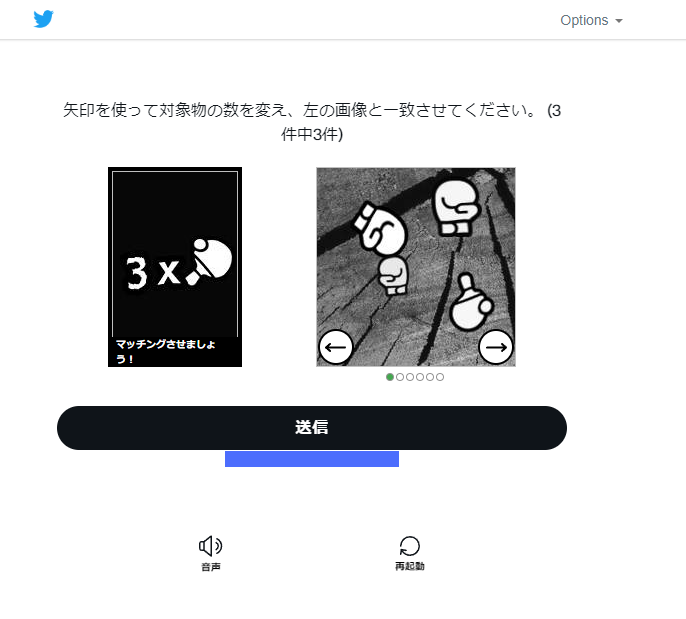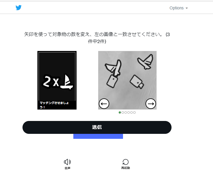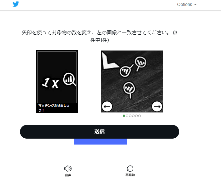 指定されたアイコンと数が一致する画像を選ぶのです。左右の矢印で画像を切り替えられます。
