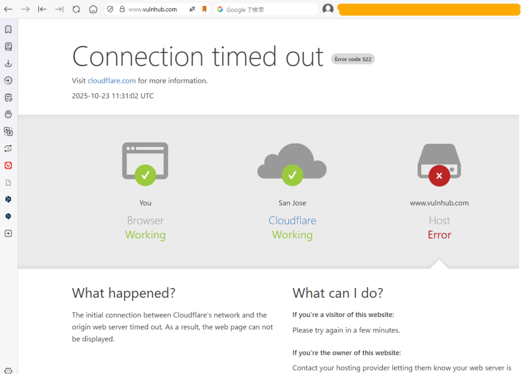 Xで「vulnhub」「error」「522」(エラーコード)などのキーワードで検索してみるのです。