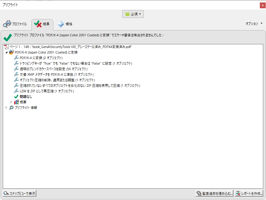 修正してから、再度PDF/X-4に変換したところ、無事うまくいきました。