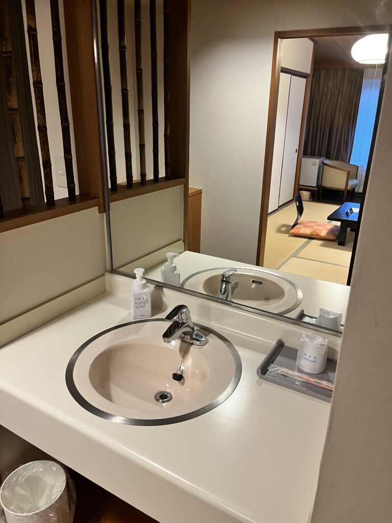 部屋には洗面台がありますし、館内のトイレは部屋から非常に近い位置にあります。このホテルは館内の随所にトイレが設けられており、不便を感じることは少なかったです。