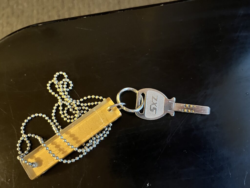 さらに、金庫の鍵には首からかけられるチェーンが付いており、持ち運び中の紛失防止にも配慮されているのがわかります。