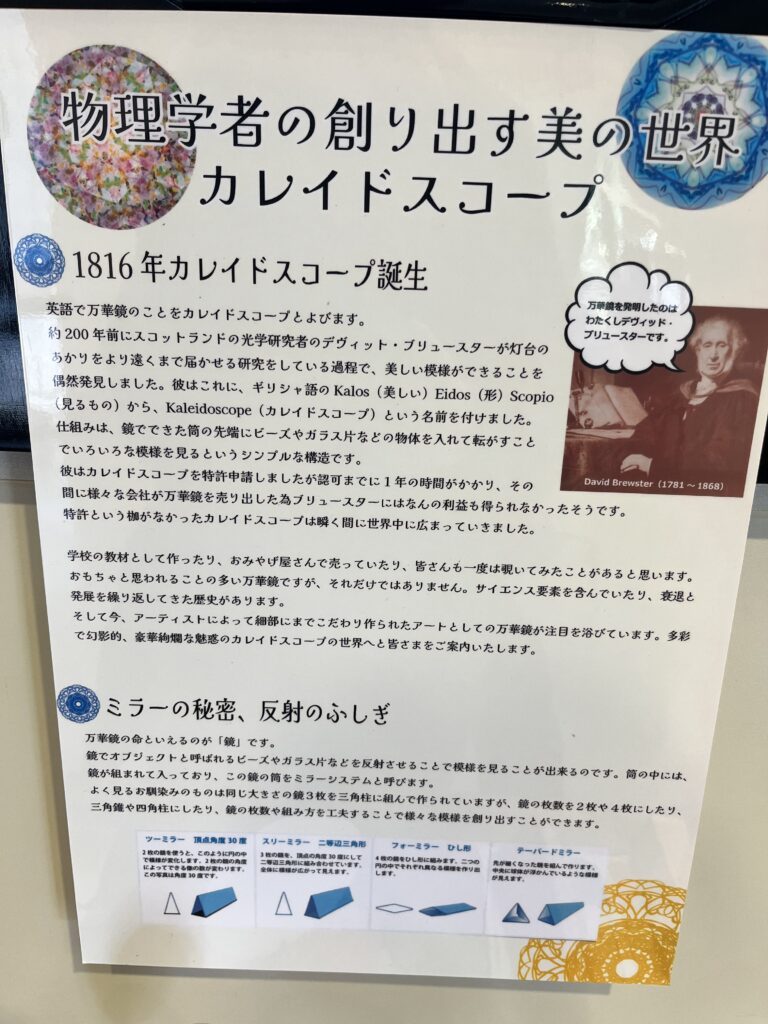 万華鏡の世界に触れ、その幻想的な美しさに心が癒やされました。見ているだけで、自然と気持ちが穏やかになっていくのを感じます。