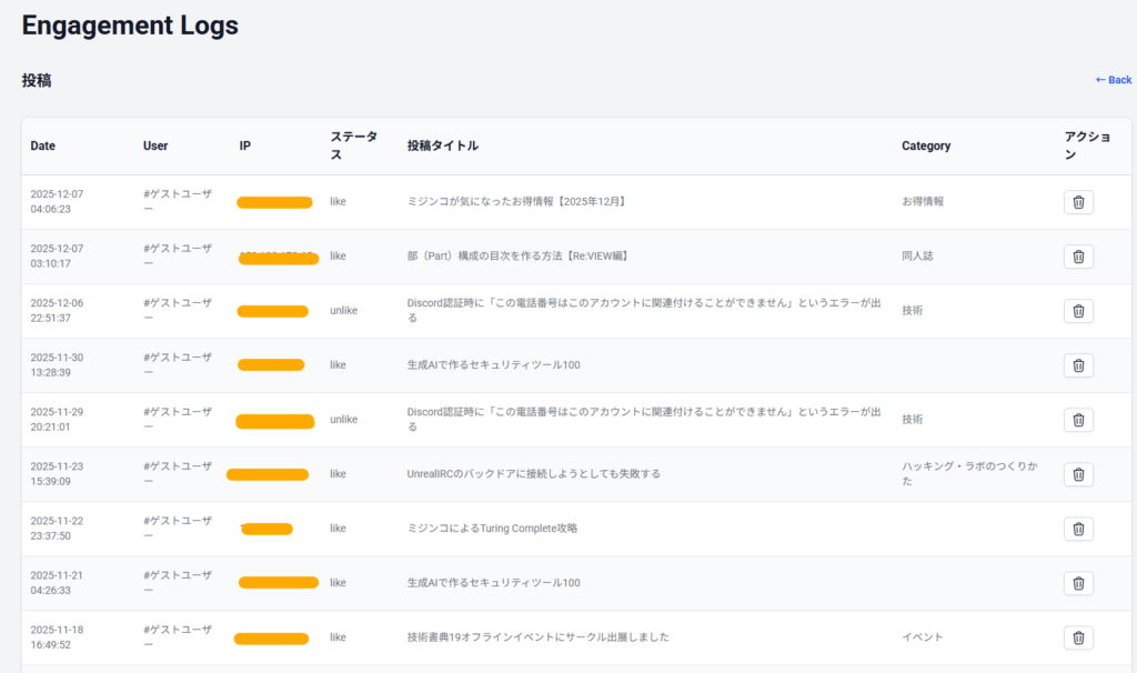 結果として、WP ULikeプラグインのログ仕様に外部から介入するのは困難かつリスクがありますが、設定変更によってunlikeの発生自体を抑制できることがわかりました。