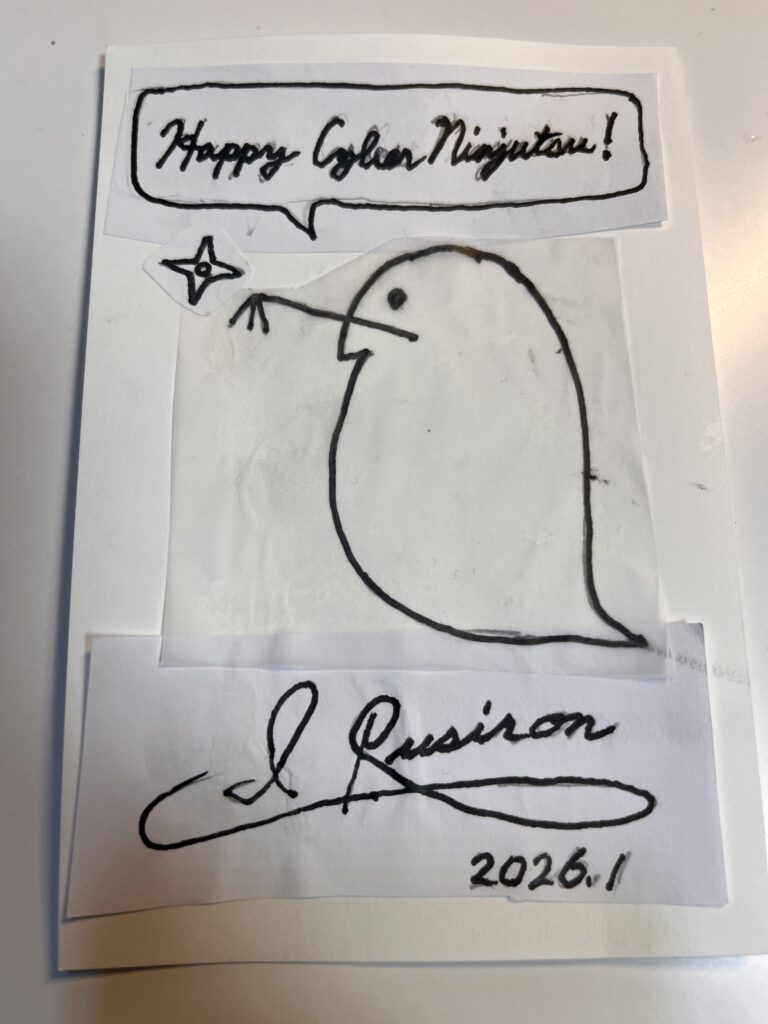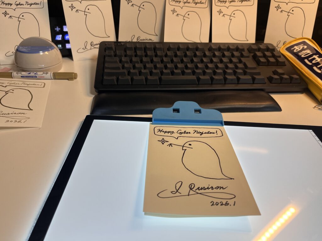 2026年1月に新刊『サイバー忍者入門』が発売されますが、ヨドバシ・ドット・コムでの予約特典として、サイン入りペーパーを用意することになりました。その数は30枚にのぼり、フリーハンドではすべてに対応するのは難しいと感じました。