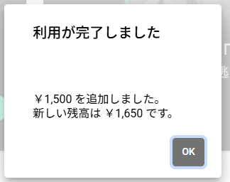 4:処理が走り、数秒後に残高チャージした結果が表示されます。
