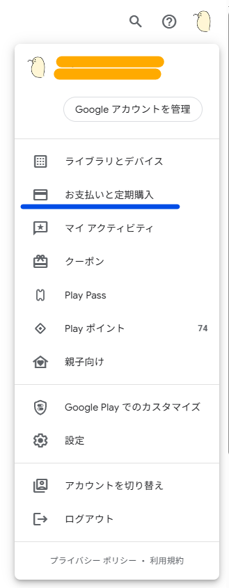 PCからGoogle Playサイトにアクセスしてメニューを表示しても、どこから残高チャージできるのかわかりませんでした。
