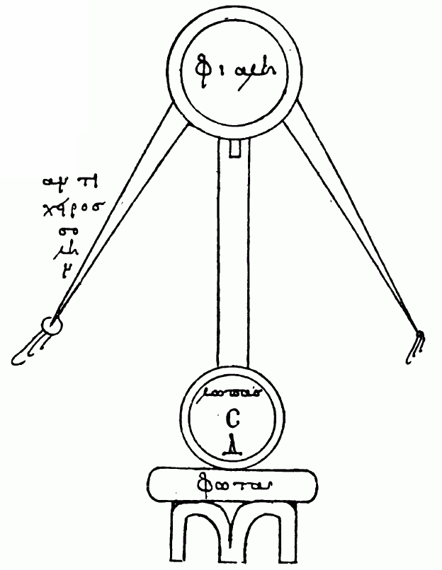 『Chrysopoeia』に描かれている、上は"dibikos"(ディビコス) という蒸留装置です。