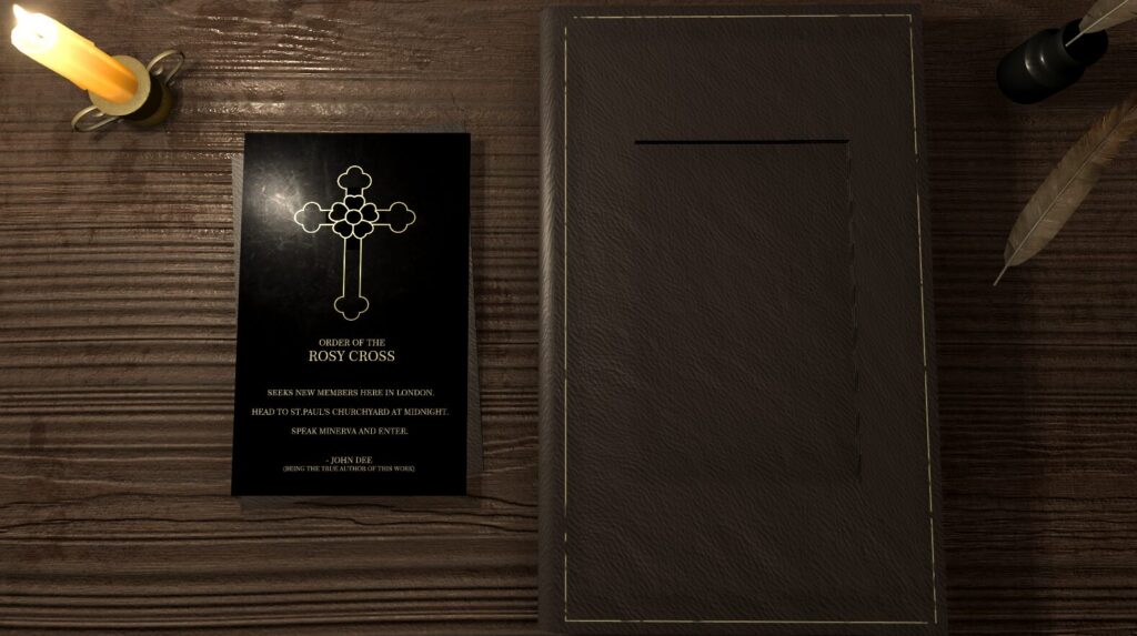 すると、表紙からくりぬかれた状態で十字架マークのプレート?が落ちています。