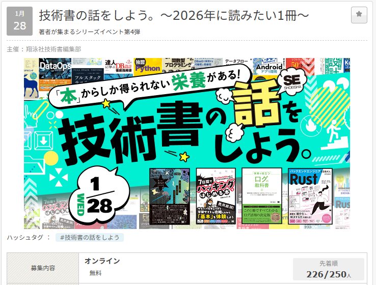 著者が集まるシリーズイベント第4弾の「技術書の話をしよう。」にオンライン登壇しました。