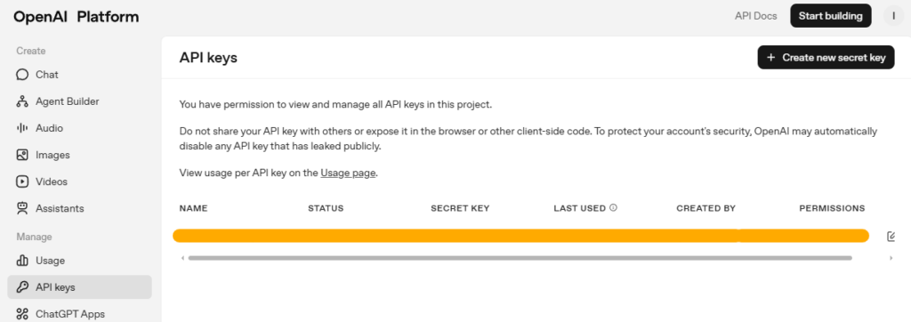 手順2: OpenAI PlatformのAPIキーを確認する【重要】