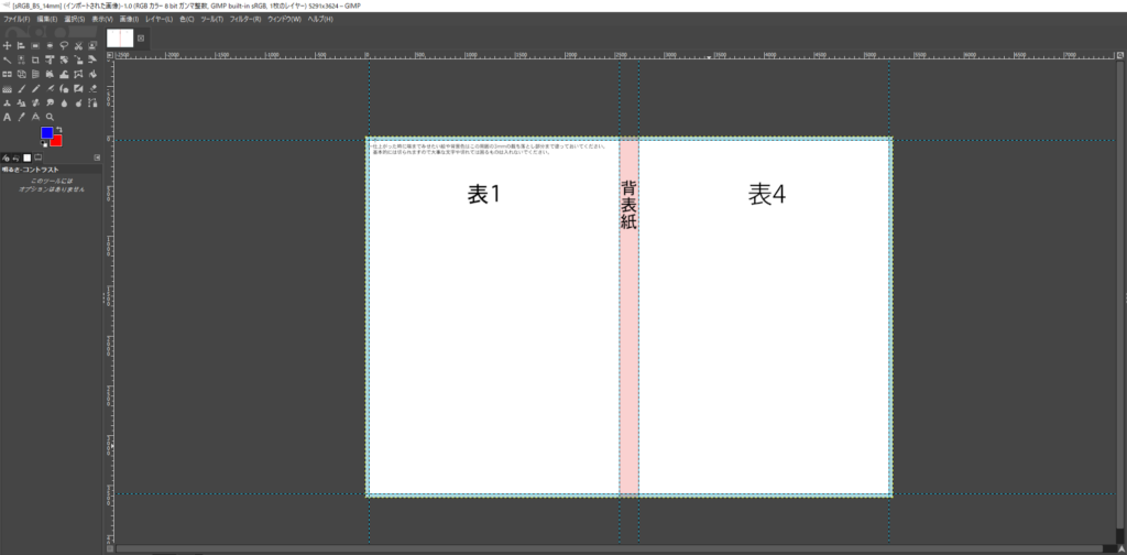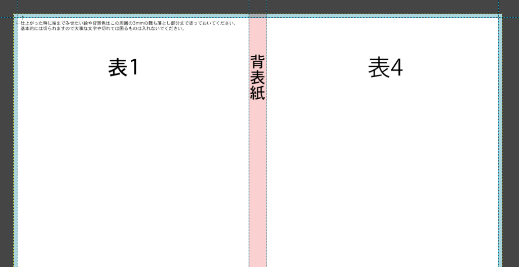 ねこのしっぽで作ってもらった表紙用テンプレートは右綴じでした。テンプレート上では左側が「表1」、右側が「表4」と表記されています。